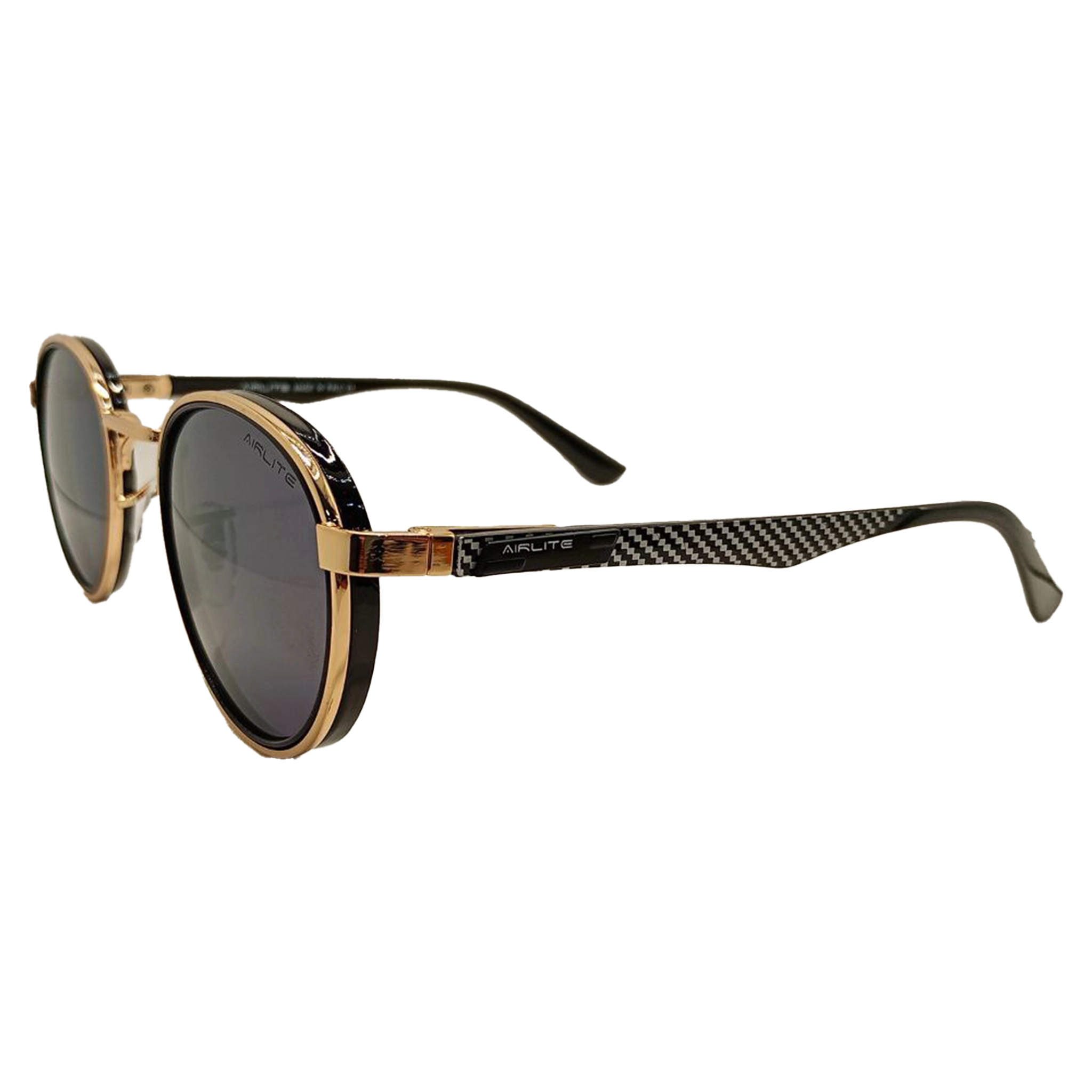 NoorShade Black Gold Full Rim Round Sunglasses