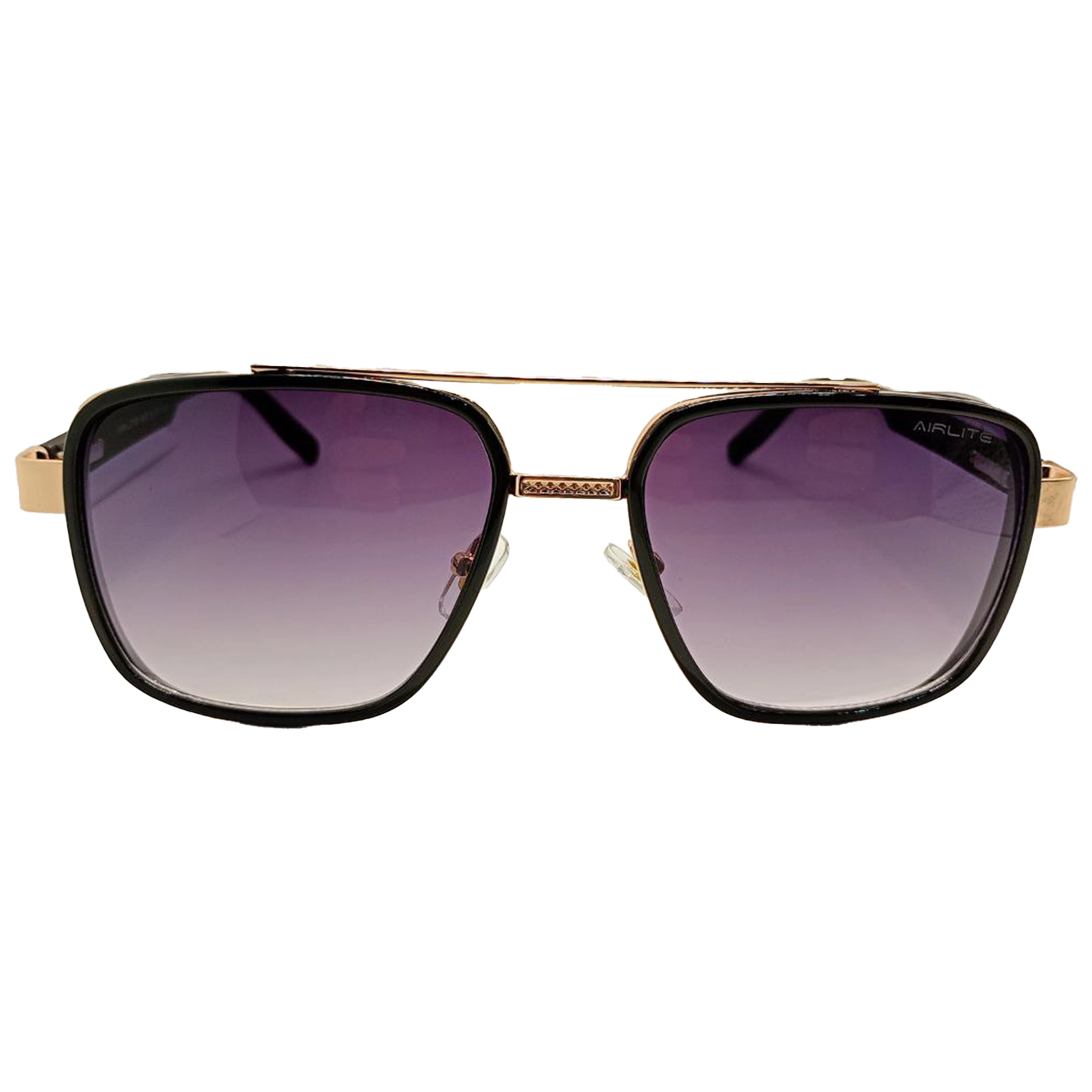 نور شيد نظارة شمسية بتصميم مستطيل بإطار ذهبي و اسود وعدسات متدرجة